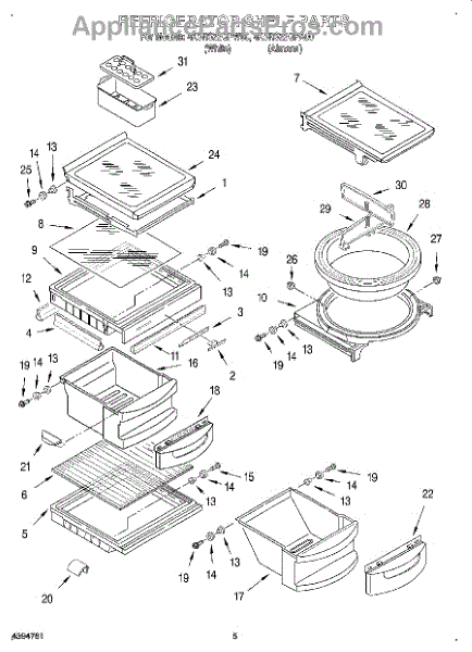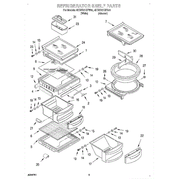 Parts for Whirlpool 4KSRS22QFW00: 04 - Refrigerator Shelf Parts