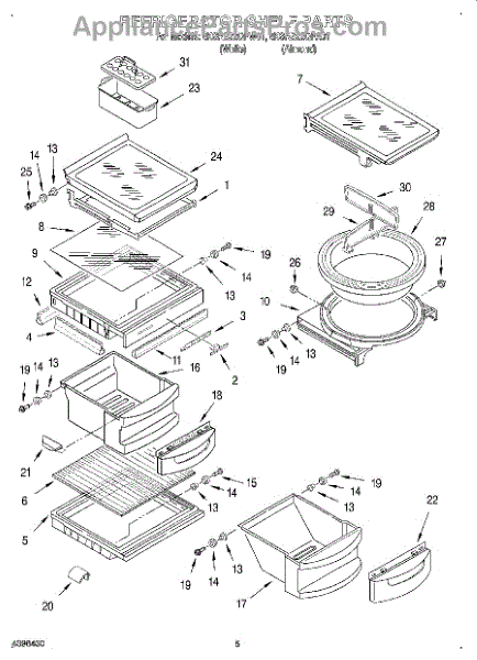 Parts for Whirlpool 4KSRS22QFW01: 04 - Refrigerator Shelf Parts