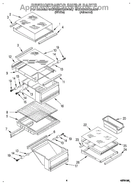 Parts for Whirlpool 4KSRS25QAA00: 03 - Refrigerator Shelf Parts
