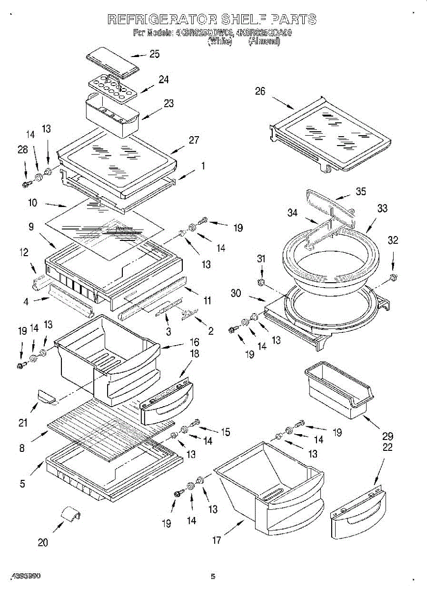 This egg carrier is a molded tray that holds and secures eggs inside the refrigerator so they stay organized and protected from rolling or breaking. It restores safe, tidy egg storage and fits the factory shelf location. What it does