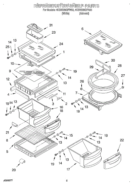 Parts for Whirlpool 4KSRS25QFW03: 04 - Refrigerator Shelf Parts