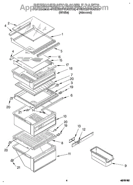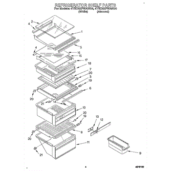 Parts for Whirlpool 4YED22PWAN00: 03 - Refrigerator Shelf Parts