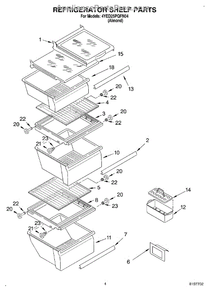 Parts for Whirlpool 4YED25PQFN04: 03 - Refrigerator Shelf Parts