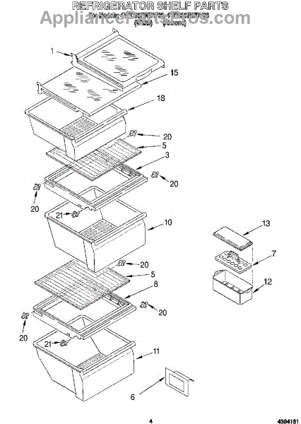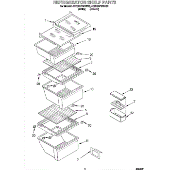 Parts for Whirlpool 4YED25PWDN00: 03 - Refrigerator Shelf Parts