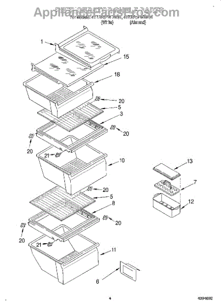 Parts for Whirlpool 4YED25PWDN01: 03 - Refrigerator Shelf Parts