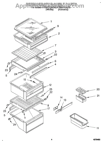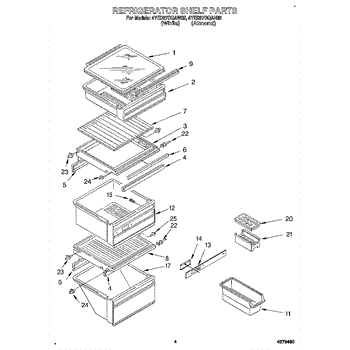 Parts for Whirlpool 4YED27DQAW02: 03 - Refrigerator Shelf Parts