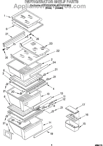 Parts for Whirlpool 4YED27DQDW00: 03 - Refrigerator Shelf Parts