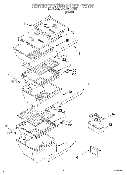 Parts for Whirlpool 4YED27PQFN02: 03 - Refrigerator Shelf Parts