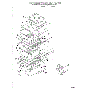 This egg carrier is a molded tray that holds and secures eggs inside the refrigerator so they stay organized and protected from rolling or breaking. It restores safe, tidy egg storage and fits the factory shelf location. What it does