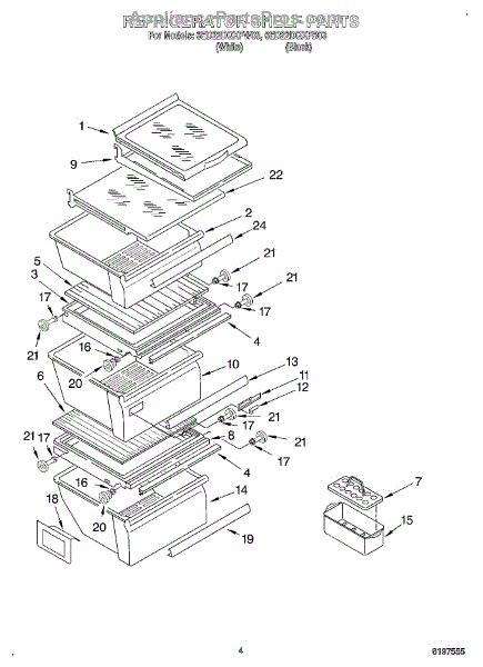 This egg carrier is a molded tray that holds and secures eggs inside the refrigerator so they stay organized and protected from rolling or breaking. It restores safe, tidy egg storage and fits the factory shelf location. What it does