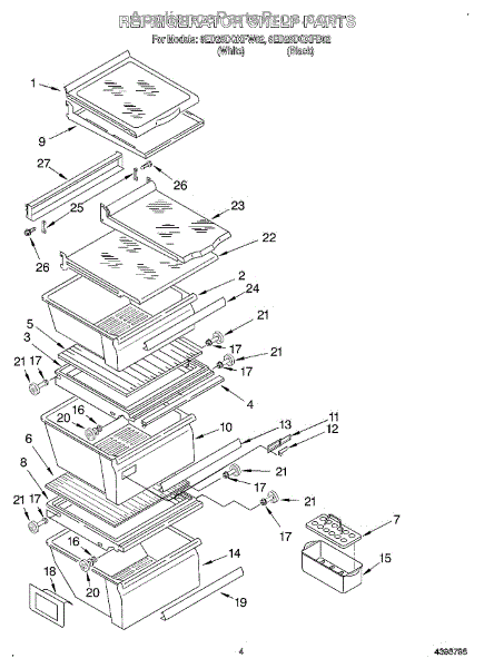 Parts for Whirlpool 6ED25DQXFB02: 03 - Refrigerator Shelf Parts