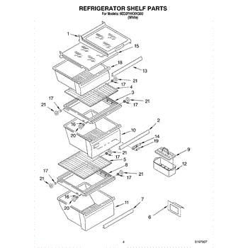 The Glass Shelf is an OEM part for Whirlpool refrigerators. It provides a sturdy and transparent surface within the refrigerator for storing food items, allowing for easy organization and visibility. The glass measures about 16.5 by 13 inches.