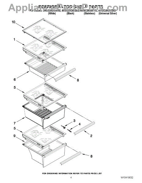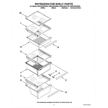 Parts for Whirlpool 6WSC20C6XW02: 03 - Refrigerator Shelf Parts