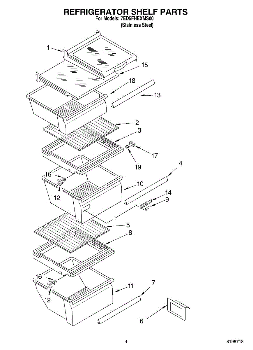 Replacement glass shelf for refrigerator interior storage. Installs in shelf frame to hold food items. Order if original is cracked, shattered, or broken.