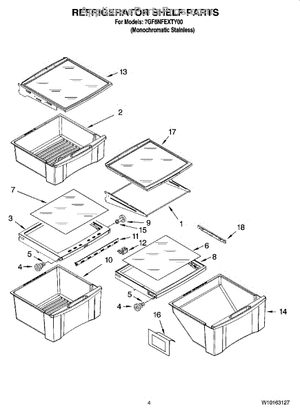 Parts for Whirlpool 7GF6NFEXTY00: 03 - Refrigerator Shelf Parts