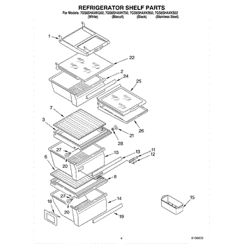 Parts for Whirlpool 7GS6SHAXKB02: 03 - Refrigerator Shelf Parts