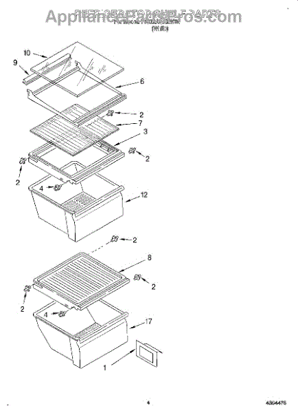 Parts for Whirlpool 7TS22AQXEW00: 03 - Refrigerator Shelf Parts