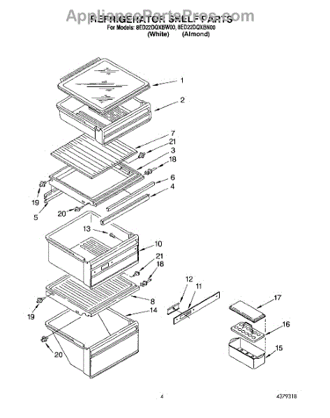 Parts for Whirlpool 8ED22DQXBN00: 03 - Refrigerator Shelf Parts