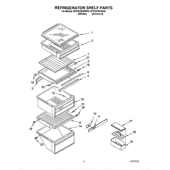 Parts for Whirlpool 8ED22DQXBW00: 03 - Refrigerator Shelf Parts
