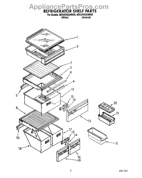 Parts for Whirlpool 8ED25DQXAN00: 04 - Refrigerator Shelf Parts