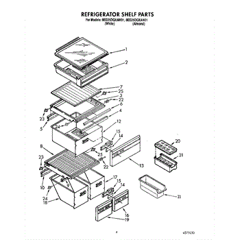 Parts for Whirlpool 8ED25DQXAW01: 03 - Refrigerator Shelf Parts