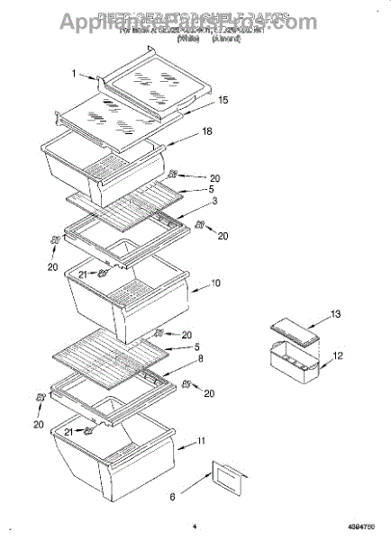 Parts for Whirlpool 8ED25PQXDW01: 03 - Refrigerator Shelf Parts