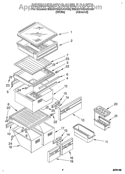 Parts for Whirlpool 8ED27DQXAN05: 03 - Refrigerator Shelf Parts