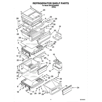 This egg carrier is a molded tray that holds and secures eggs inside the refrigerator so they stay organized and protected from rolling or breaking. It restores safe, tidy egg storage and fits the factory shelf location. What it does