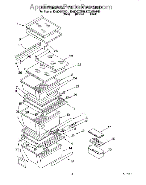Parts for Whirlpool ED22DQXDN01: 03 - Refrigerator Shelf Parts