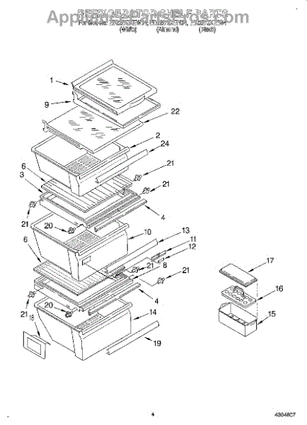 Parts for Whirlpool ED22DQXEB04: 03 - Refrigerator Shelf Parts