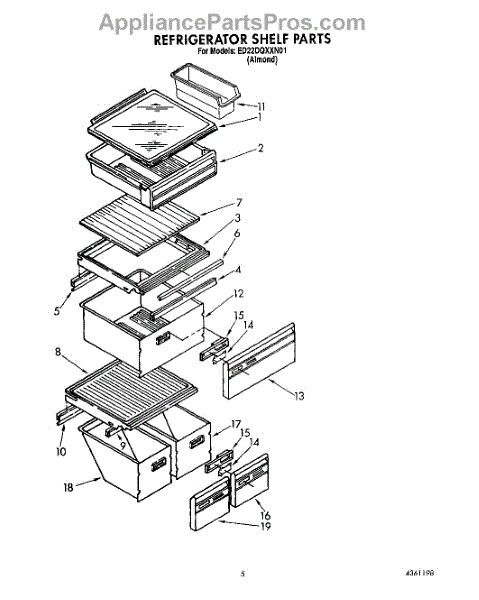 Parts for Whirlpool ED22DQXXN01: 04 - Refrigerator Shelf Parts