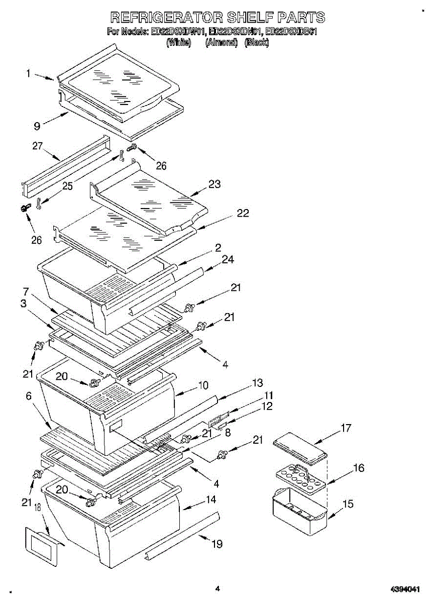 Molded tray that holds and secures eggs on your refrigerator shelf. Replace if cracked, broken, or missing to restore organized, protected egg storage.