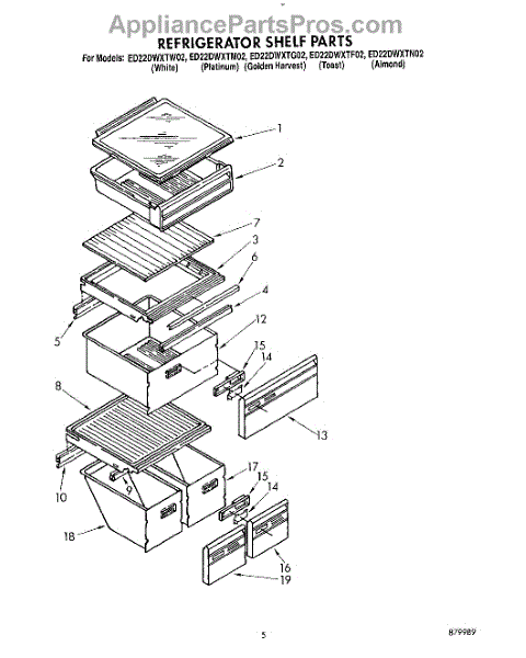 Parts for Whirlpool ED22DWXTN02: 04 - Refrigerator Shelf Parts