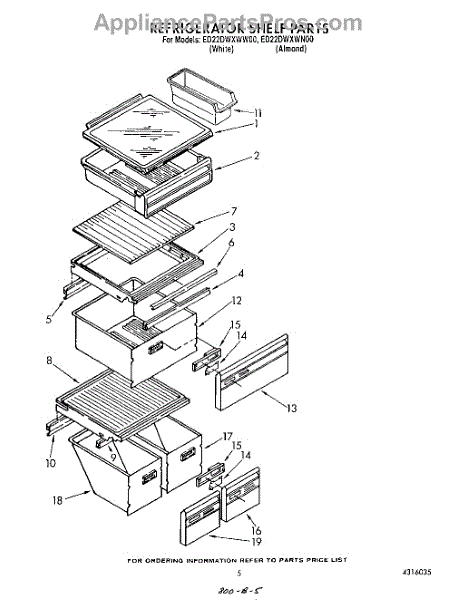 Parts for Whirlpool ED22DWXWN00: 04 - Refrigerator Shelf Parts