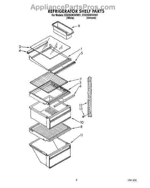 Parts for Whirlpool ED22GWXXW01: 04 - Refrigerator Shelf Parts