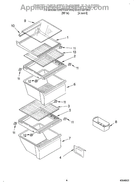 Parts for Whirlpool ED22TQXFN00: 03 - Refrigerator Shelf Parts