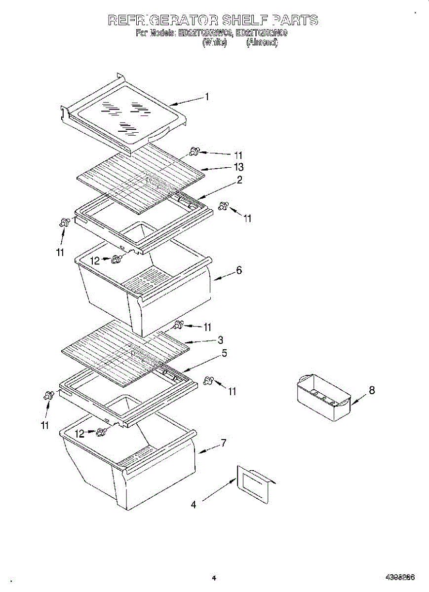 Parts for Whirlpool ED22TQXGN00: 03 - Refrigerator Shelf Parts