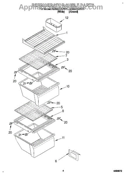 Parts for Whirlpool ED22ZRXDW01: 03 - Refrigerator Shelf Parts