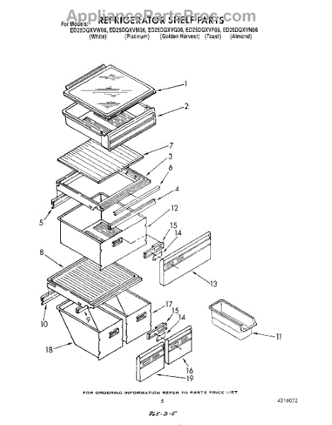 Parts for Whirlpool ED25DQXVW06: 04 - Refrigerator Shelf Parts