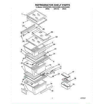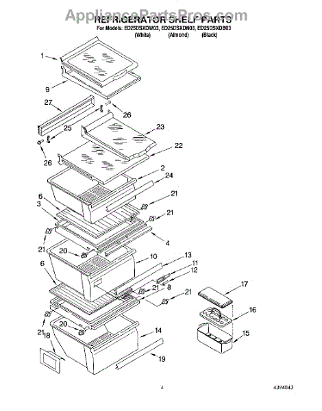 Parts for Whirlpool ED25DSXDB03: 03 - Refrigerator Shelf Parts