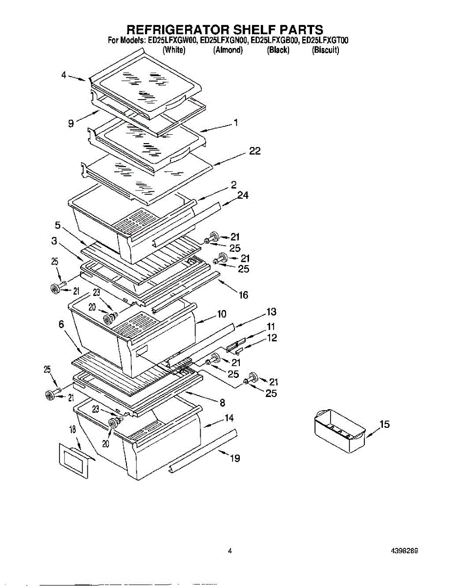 Glass shelf for refrigerator fresh-food compartment. Provides stable surface for storing food and containers. Replace if cracked, broken, or missing.