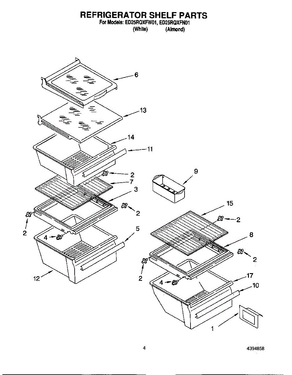 Parts for Whirlpool ED25RQXFN01: 03 - Refrigerator Shelf Parts
