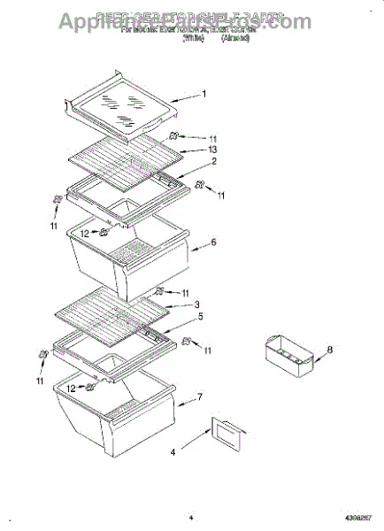 Parts for Whirlpool ED25TQXGN00: 03 - Refrigerator Shelf Parts