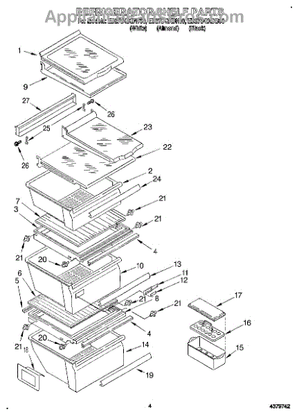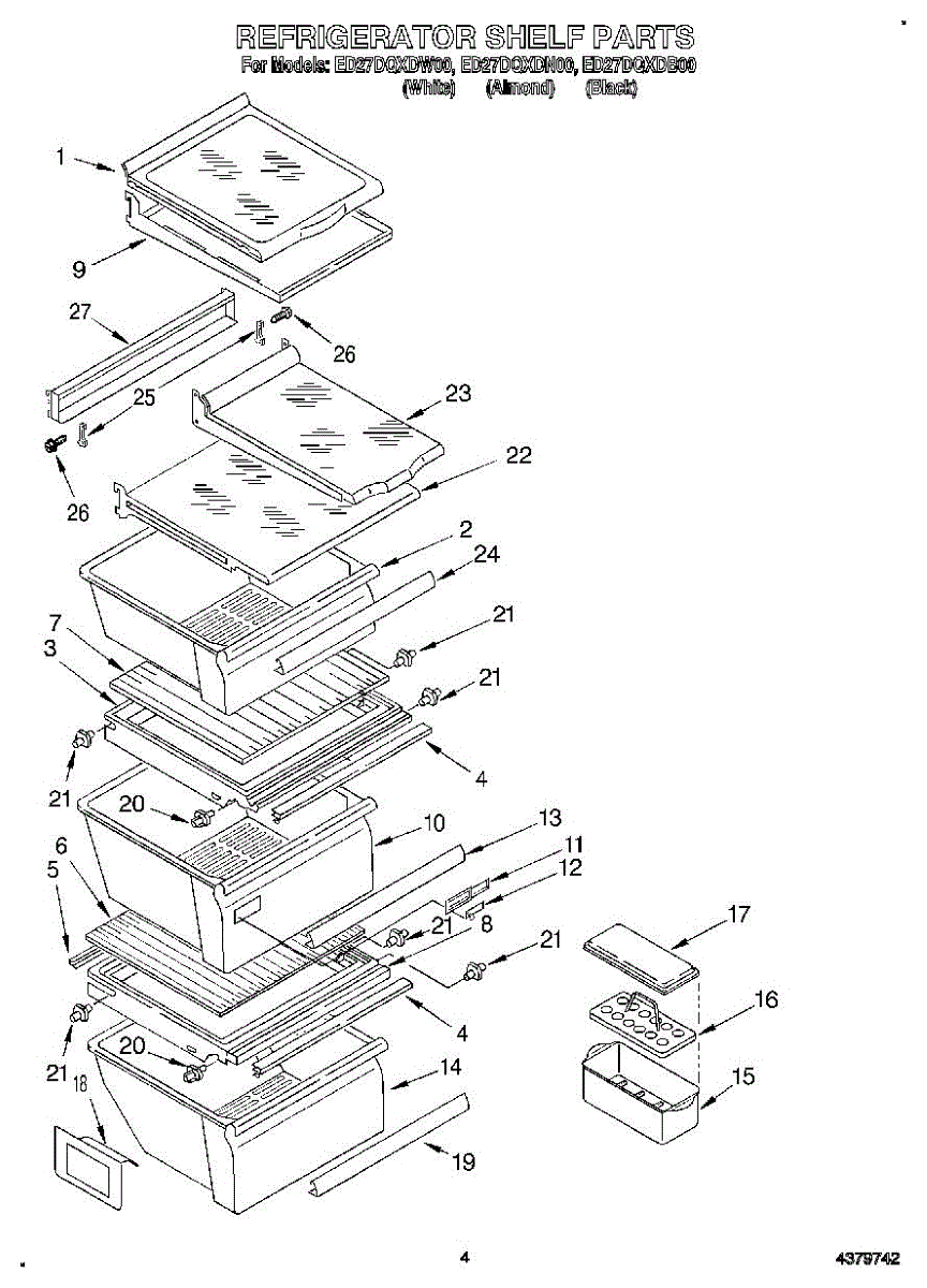 Parts for Whirlpool ED27DQXDN00: 03 - Refrigerator Shelf Parts