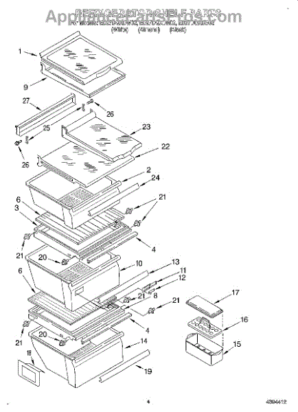 Parts for Whirlpool ED27DQXDW02: 03 - Refrigerator Shelf Parts