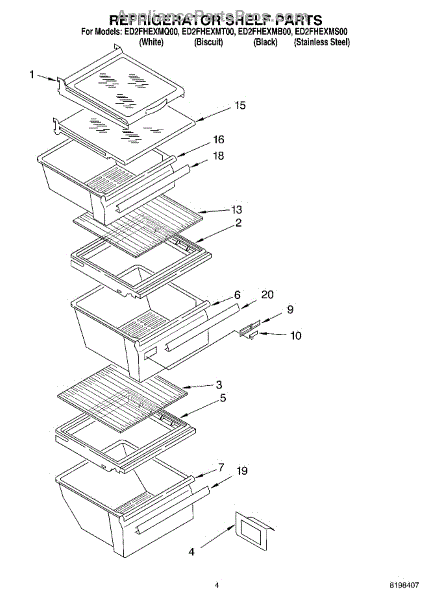 Parts for Whirlpool ED2FHEXMS00: 03 - Refrigerator Shelf Parts