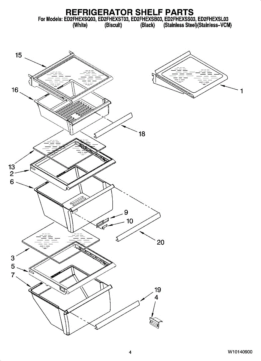 Parts for Whirlpool ED2FHEXSB03: 03 - Refrigerator Shelf Parts