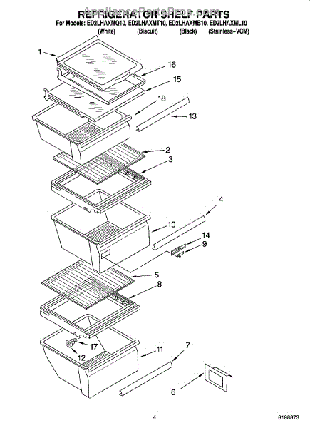 Parts for Whirlpool ED2LHAXMQ10: 03 - Refrigerator Shelf Parts