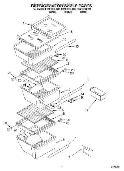 Replacement glass shelf for refrigerator interior storage. Installs in shelf frame to hold food items. Order if original is cracked, shattered, or broken.