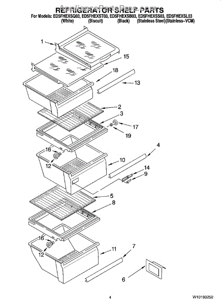 Parts for Whirlpool ED5FHEXSB03: 03 - Refrigerator Shelf Parts